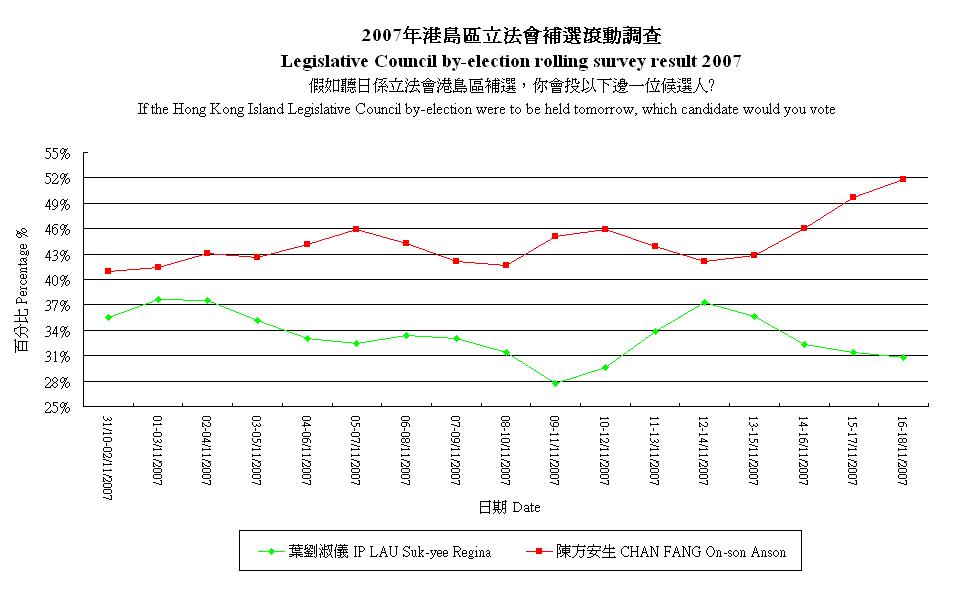 | ²Ä¤T½ü¥ßªk·|»´ä®q¿ï°Ï¸É¿ïºu°Ê½Õ¬d 2007 Third round of Legislative Council by-election rolling survey result 2007 |
