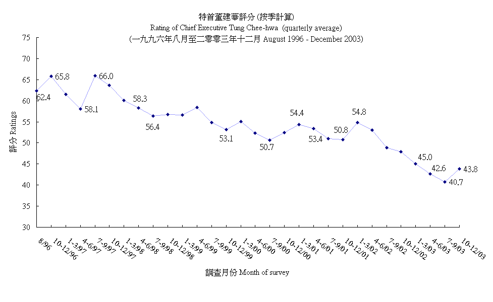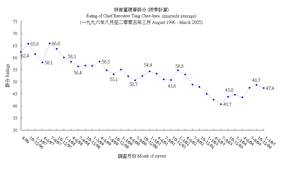 特首董建華評分 (按季計算) Rating of Chief Executive Tung Chee-hwa (quarterly average) |