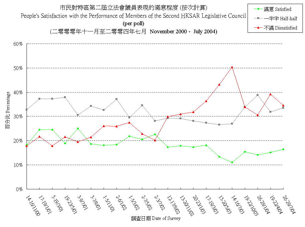 市民對特區第二屆立法會議員表現的滿意程度 (按次計算) People's Satisfaction with the Performance of Members of the Second HKSAR Legislative Council (per poll) |