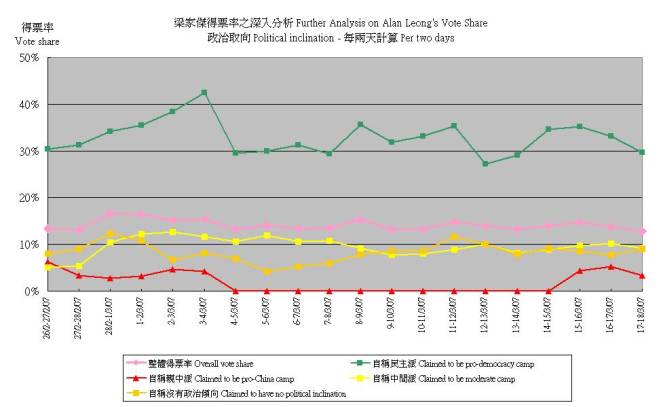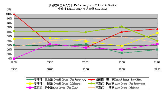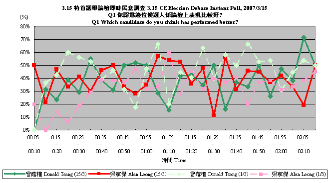 (1) 3月15日特首選舉辯論中候選人表現,按5分鐘時段變化: |