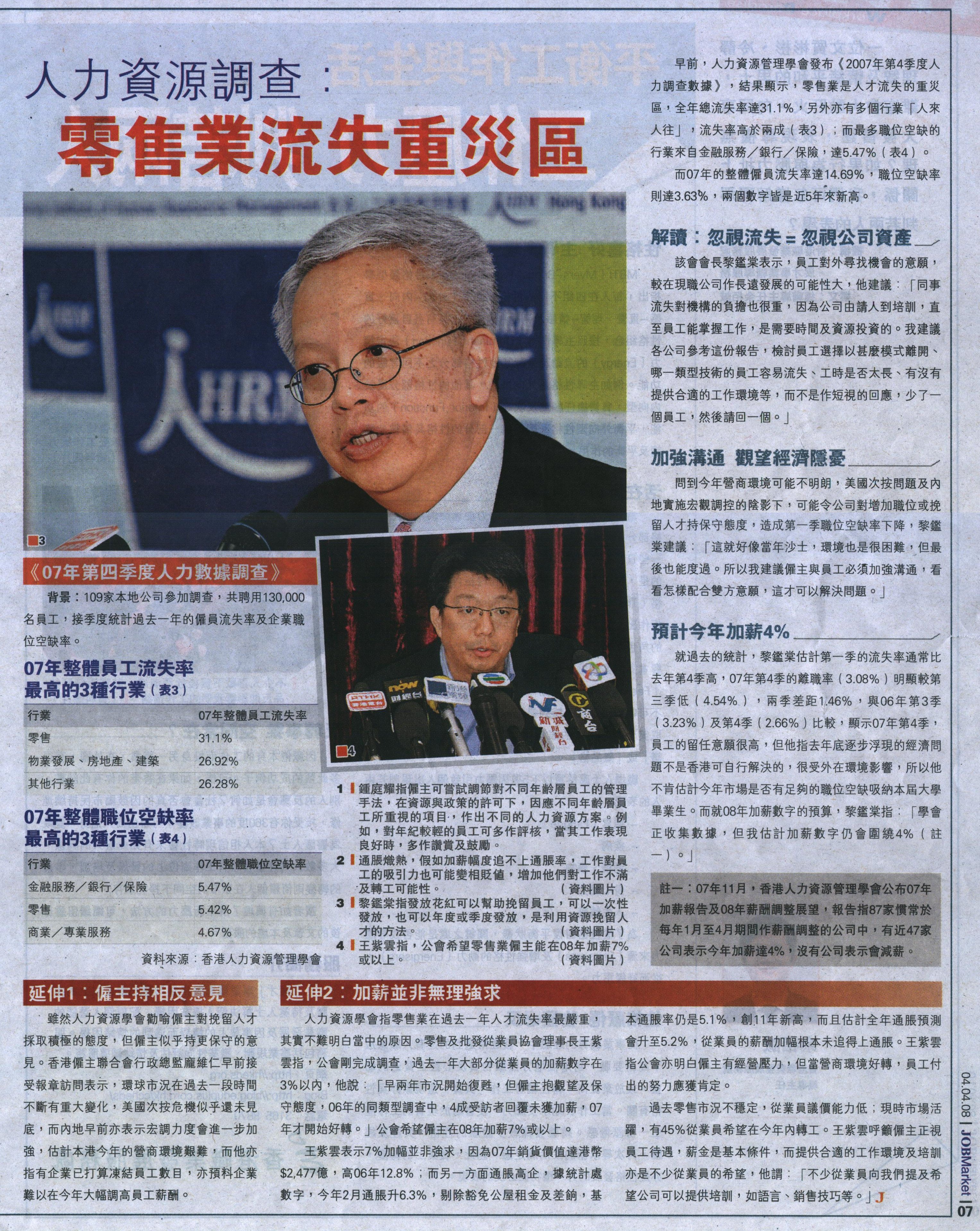 人力資源調查 零售業流失重災區 (04/04/2008)