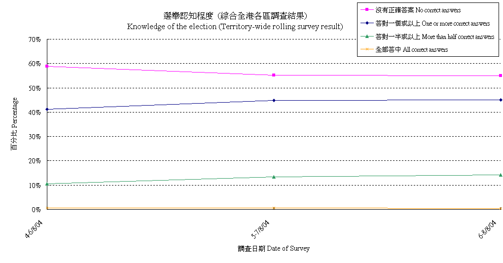 | 調查日期 | 沒有正確答案 | 答對一個或以上 | 答對一半或以上 | 全部答中 |