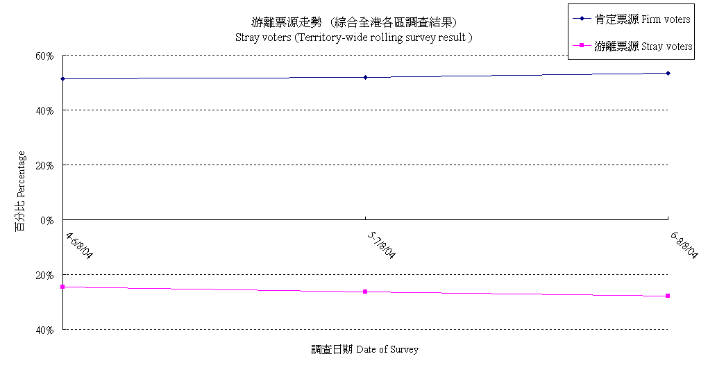 | 調查日期 | 肯定票源 | 游離票源 | 不會投票者 | 合計 |