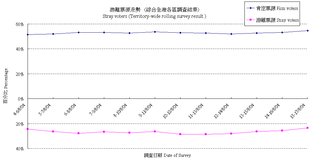 | 15-17/8/04 | 6.5% | 15.6% | 76.2% | 1.7% | 100.0% |