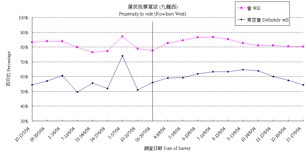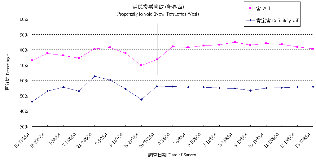 | 13-17/8/04 | 54.3% | 26.1% | 19.6% | 100.0% |