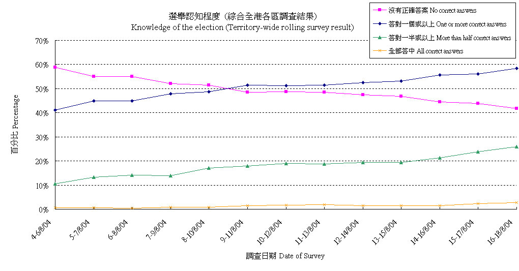 | 調查日期 | 沒有正確答案 | 答對一個或以上 | 答對一半或以上 | 全部答中 |