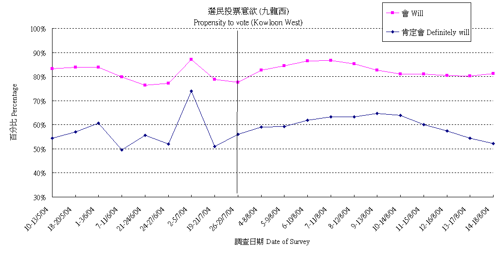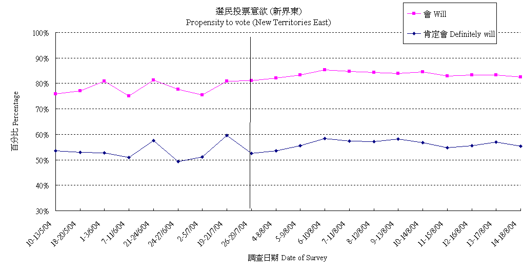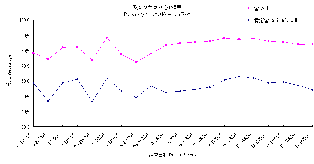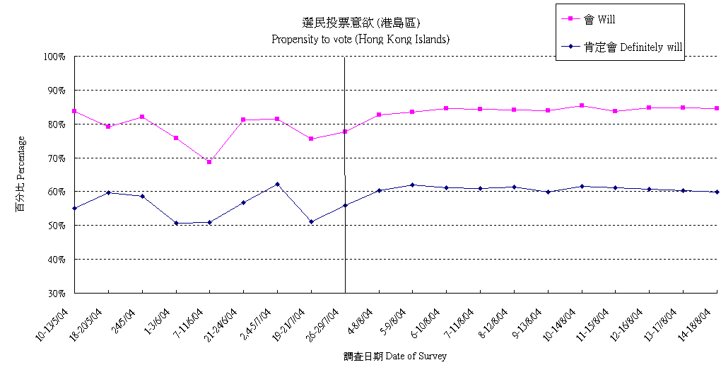 | 14-18/8/04 | 61.9% | 18.3% | 19.8% | 100.0% |