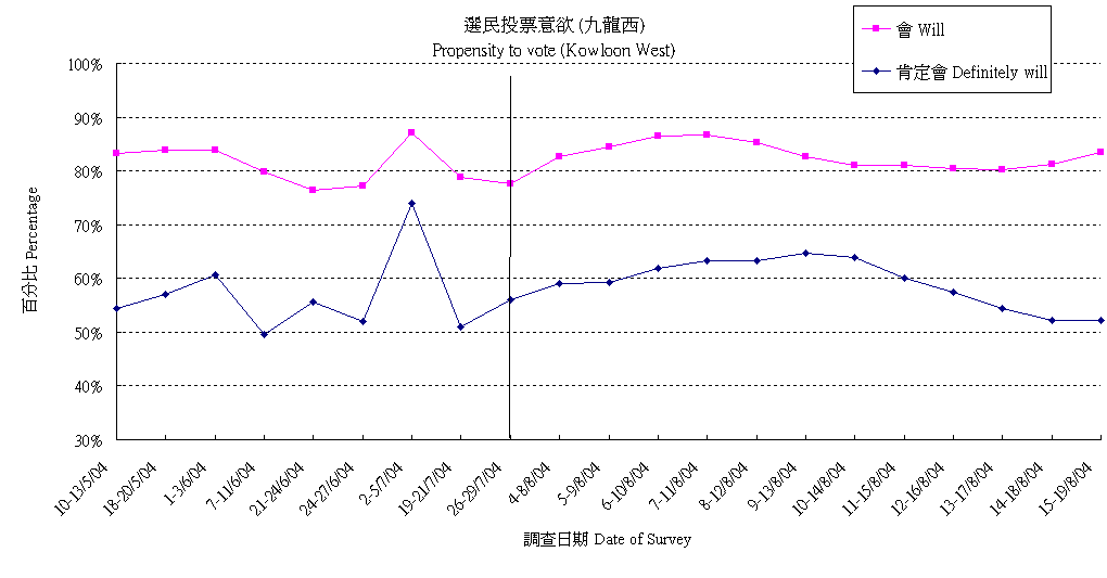 | 14-18/8/04 | 50.4% | 27.1% | 22.5% | 100.0% |