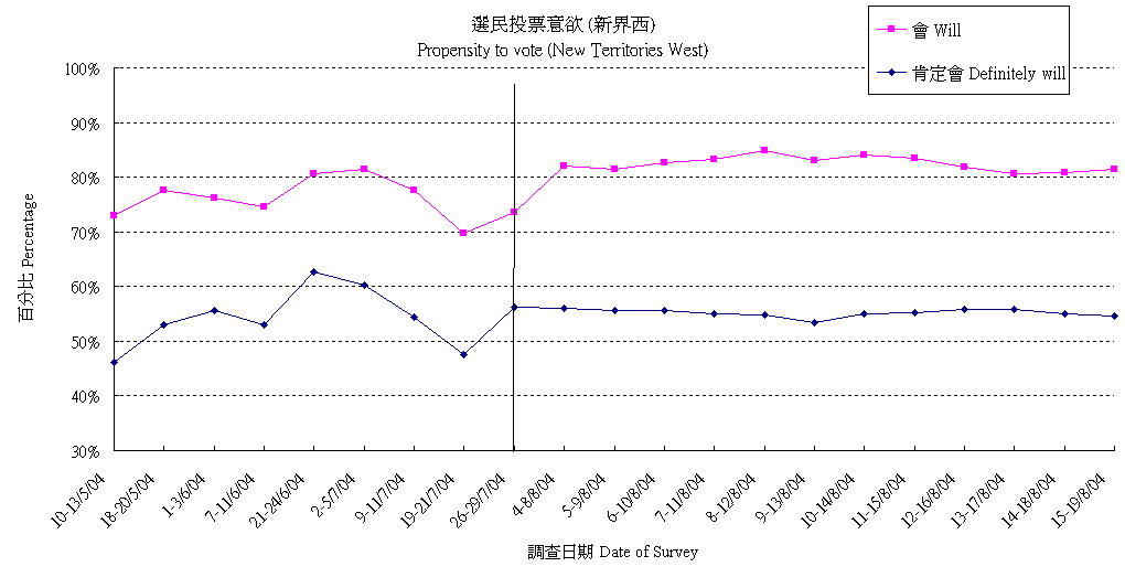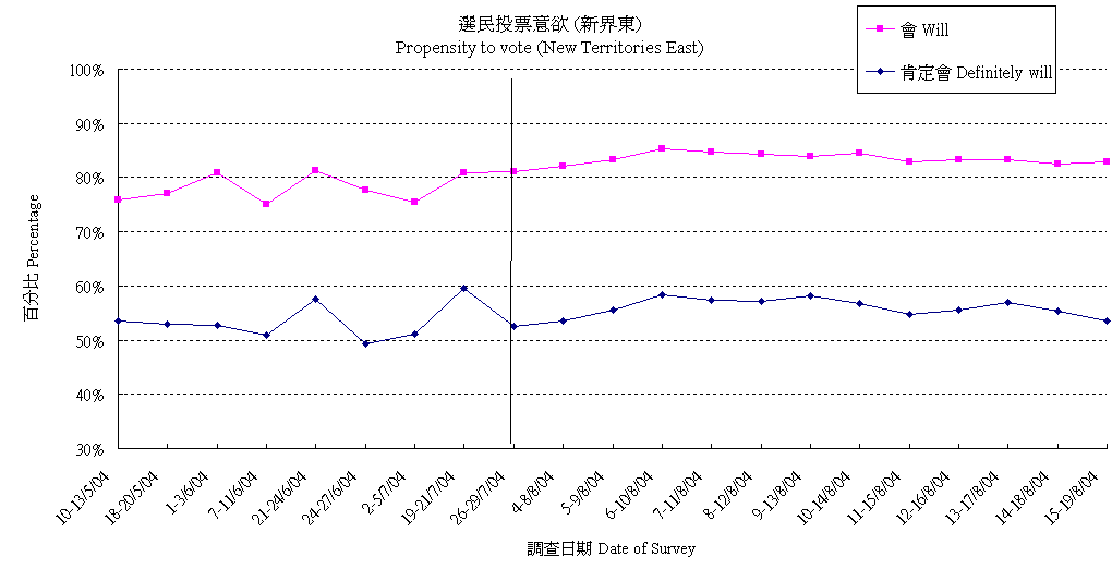| 15-19/8/04 | 50.1% | 26.0% | 23.9% | 100.0% |