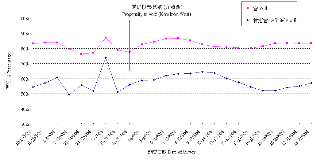 | 14-18/8/04 | 50.4% | 27.1% | 22.5% | 100.0% |