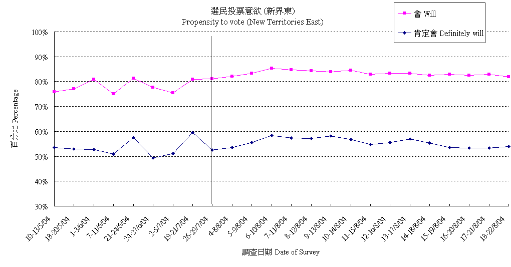 | 未決定/唔知/難講 | 29.0% | 29.1% | 28.0% | 29.2% | 32.2% | 33.8% | 34.6% | 34.7% | 33.2% | 33.5% | 32.6% | 33.8% | 34.4% | 35.2% | 36.2% |