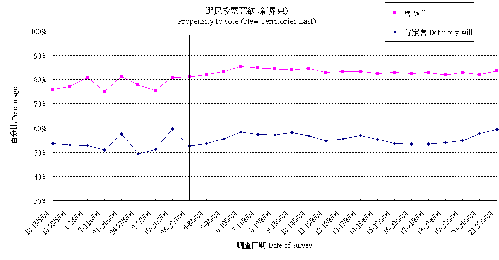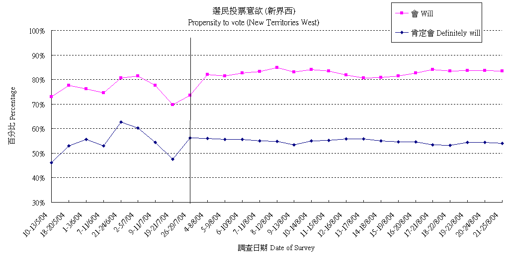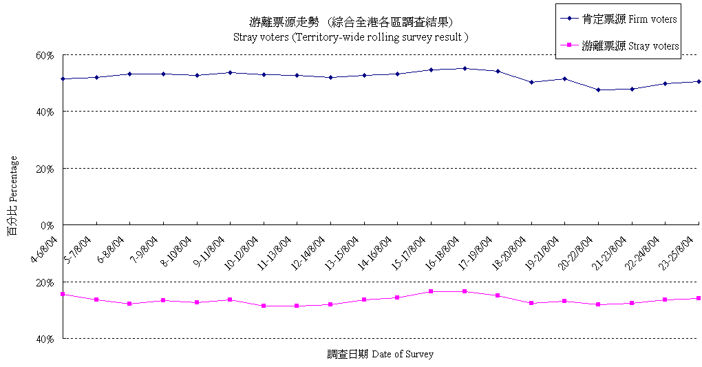 | 未決定/唔知/難講 | 29.0% | 29.1% | 28.0% | 29.2% | 32.2% | 33.8% | 34.6% | 34.7% | 33.2% | 33.5% | 32.6% | 33.8% | 34.4% | 35.2% | 36.2% | 36.6% | 36.7% | 35.0% |