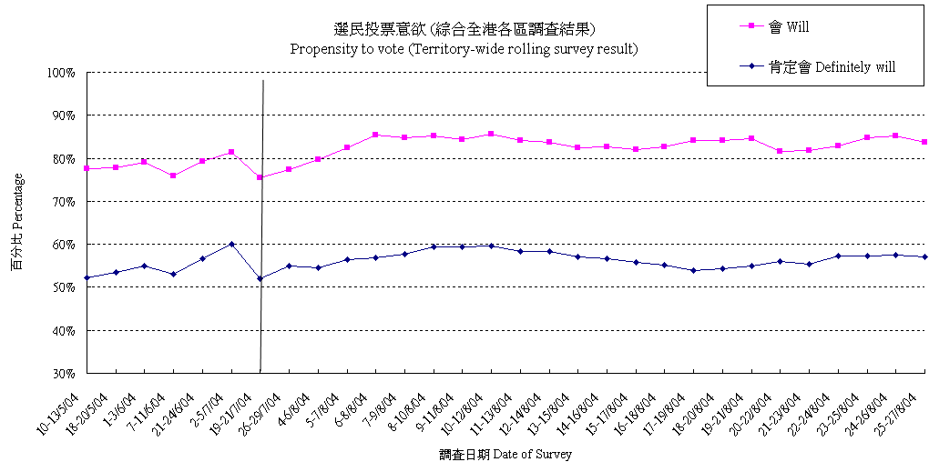 | 未決定/唔知/難講 | 29.0% | 29.1% | 28.0% | 29.2% | 32.2% | 33.8% | 34.6% | 34.7% | 33.2% | 33.5% | 32.6% | 33.8% | 34.4% | 35.2% | 36.2% | 36.6% | 36.7% | 35.0% | 35.5% | 34.9% |