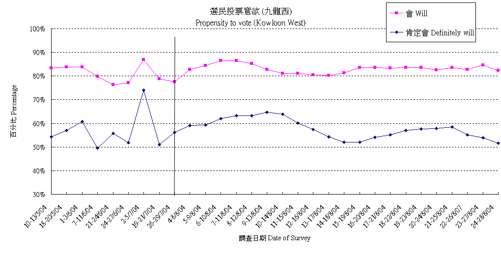 | 19-23/8/04 | 49.7% | 26.6% | 23.7% | 100.0% |