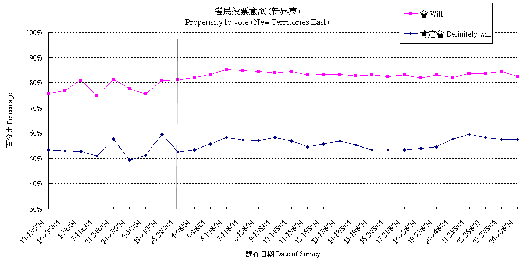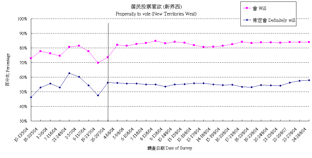 | 17-21/8/04 | 51.9% | 26.3% | 21.8% | 100.0% |