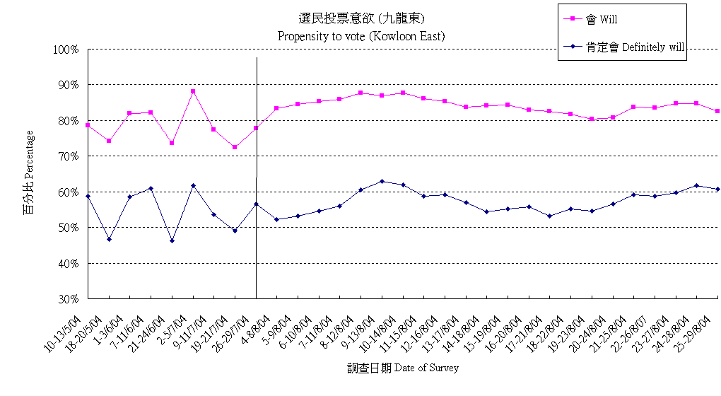 | 題目 : 係黎緊既立法會地區直選,你會唔會去投票?(訪問員追問程度) |