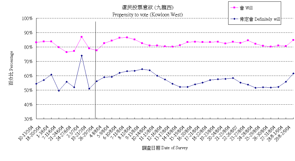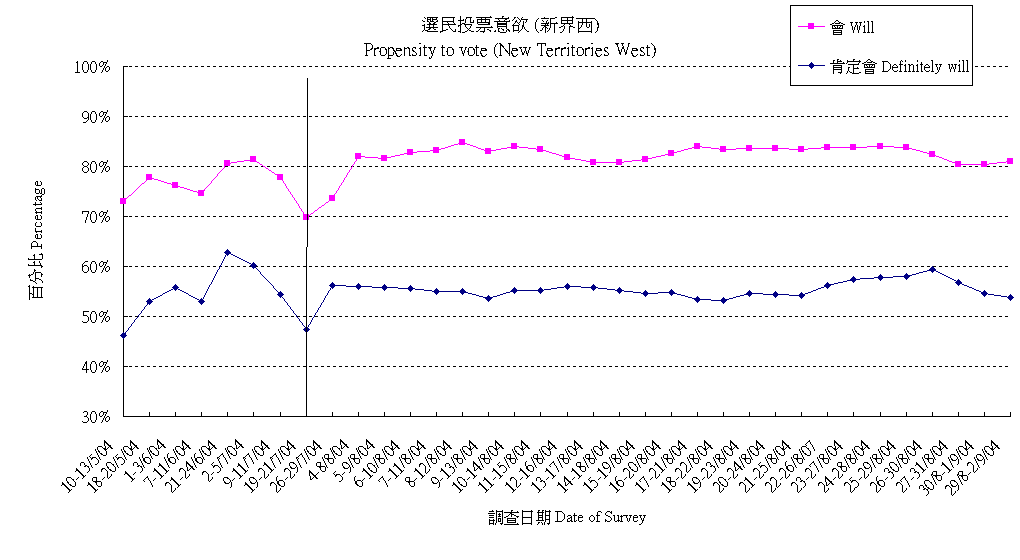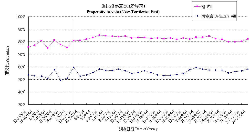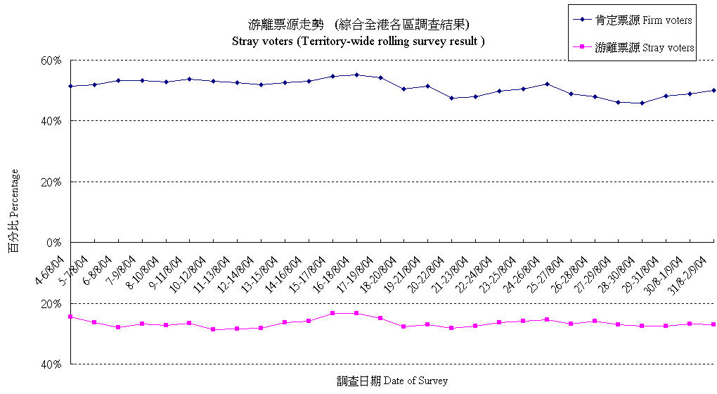 | 未決定/唔知/難講 | 32.2% | 33.6% | 33.7% | 34.4% | 38.3% | 40.7% | 40.4% | 41.1% | 40.8% | 40.5% | 39.7% | 38.9% | 38.7% | 36.8% | 36.7% | 37.2% | 37.5% | 38.1% | 39.9% | 43.3% | 43.8% | 46.2% | 47.8% | 48.2% | 46.3% | 45.1% |