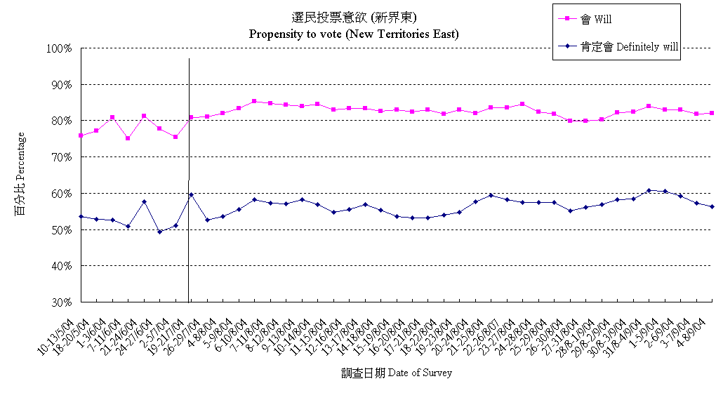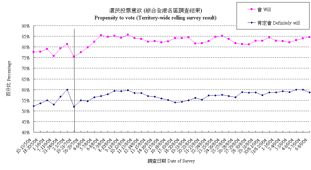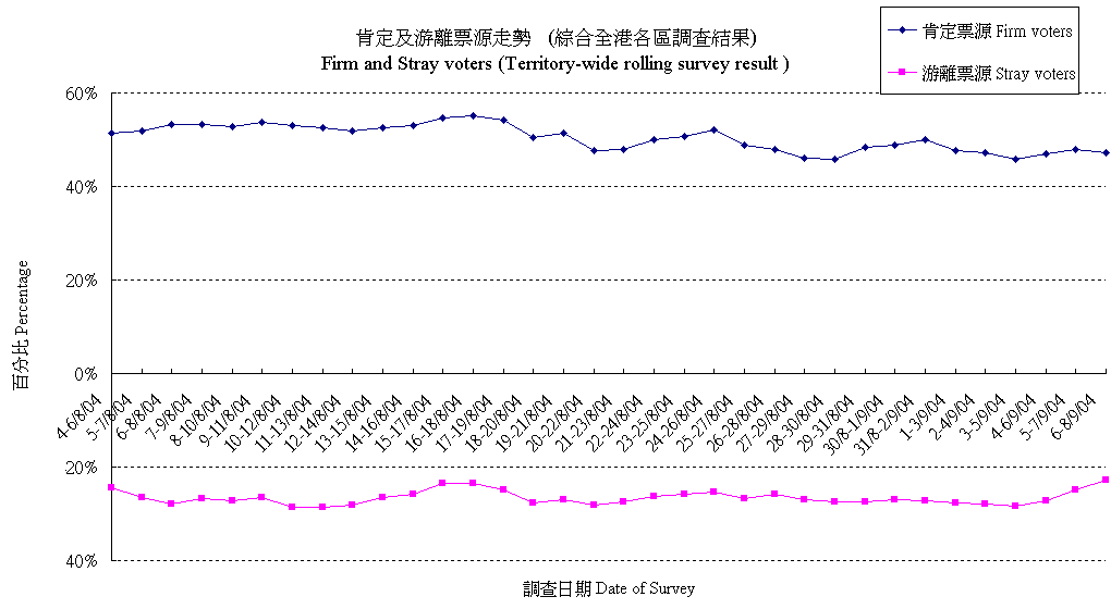 | 未決定/唔知/難講 | 32.2% | 33.6% | 33.7% | 34.4% | 38.3% | 40.7% | 40.4% | 41.1% | 40.8% | 40.5% | 39.7% | 38.9% | 38.7% | 36.8% | 36.7% | 37.2% | 37.5% | 38.1% | 39.9% | 43.3% | 43.8% | 46.2% | 47.8% | 48.2% | 46.3% | 45.1% | 43.9% | 43.7% | 46.6% | 45.3% | 45.8% | 46.1% |