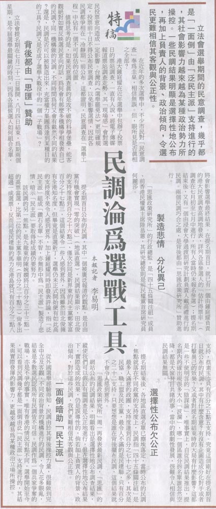 文匯 - 勿被某些「民調」所騙