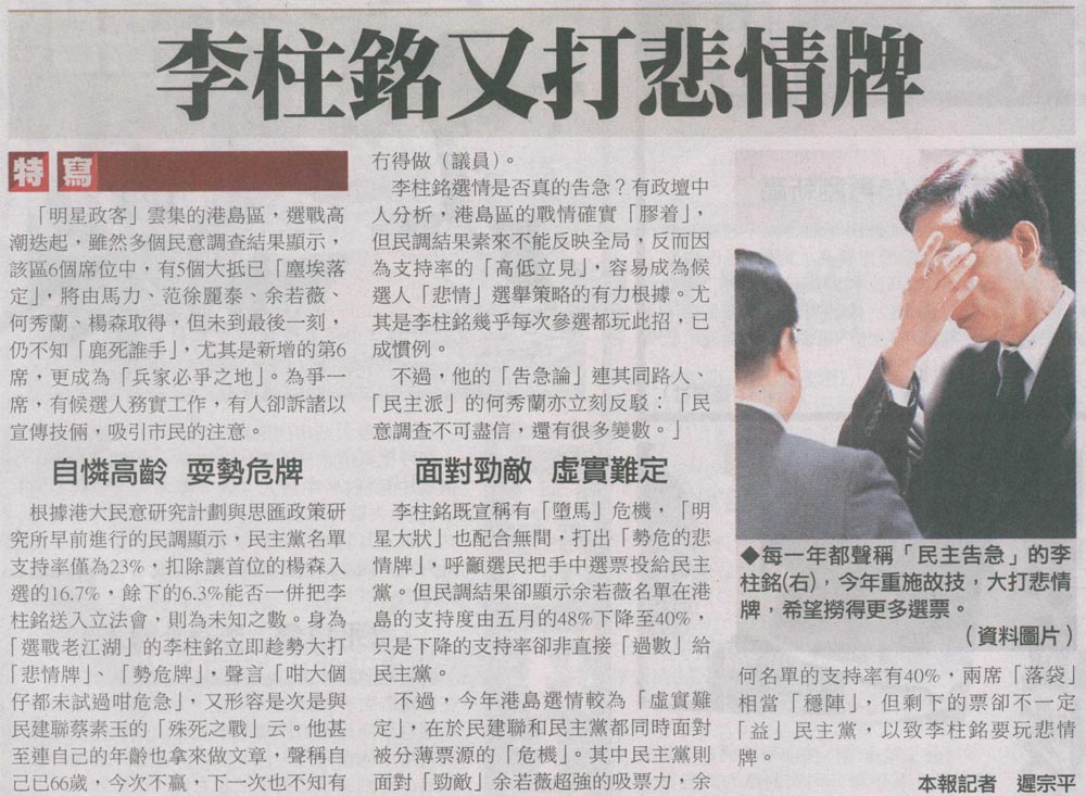 文匯 - 李柱銘又打悲情牌