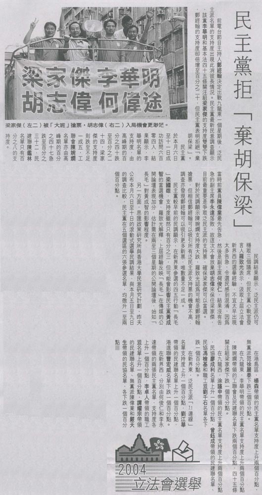 HK Economic Journal - 民主黨拒「棄胡保梁」