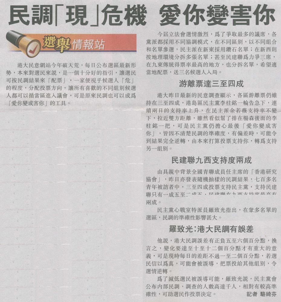 星島 - 民調「現」危機愛你變害你