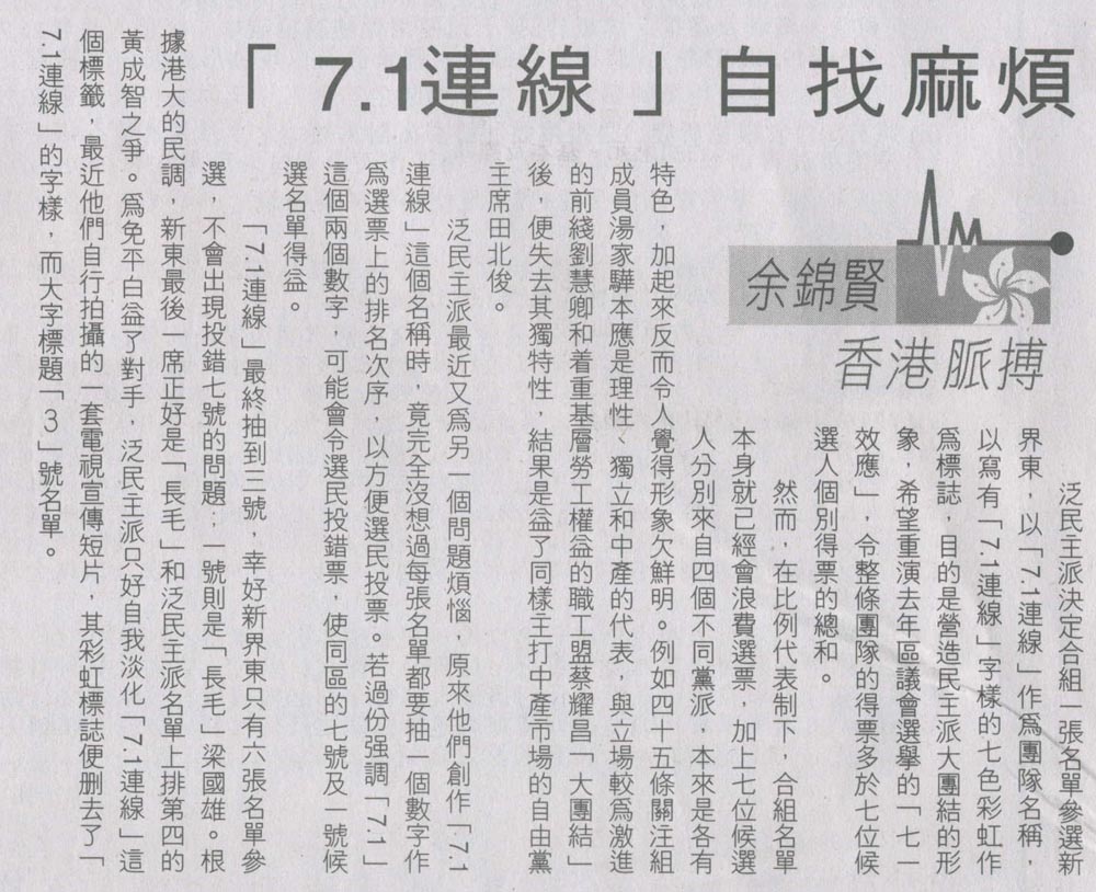 HK Economic Journal - 「7.1連線」自找麻煩