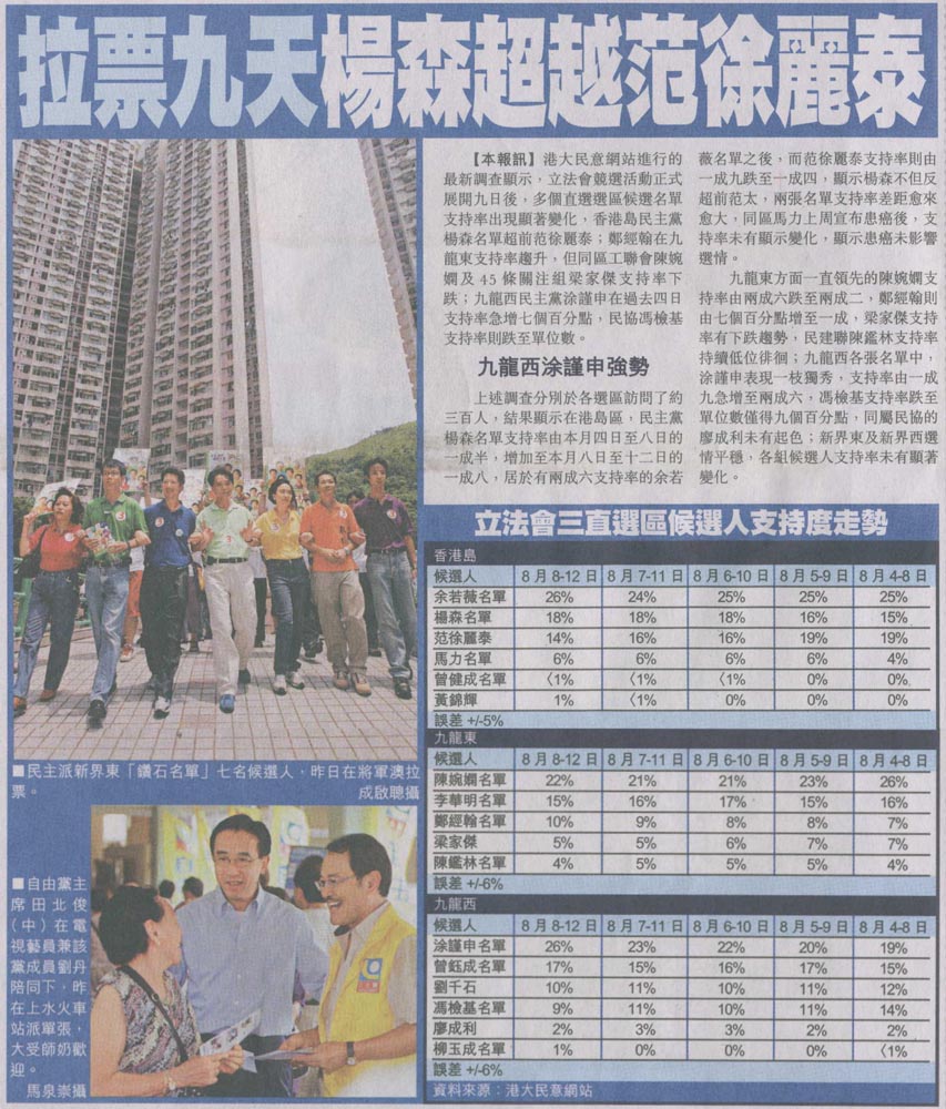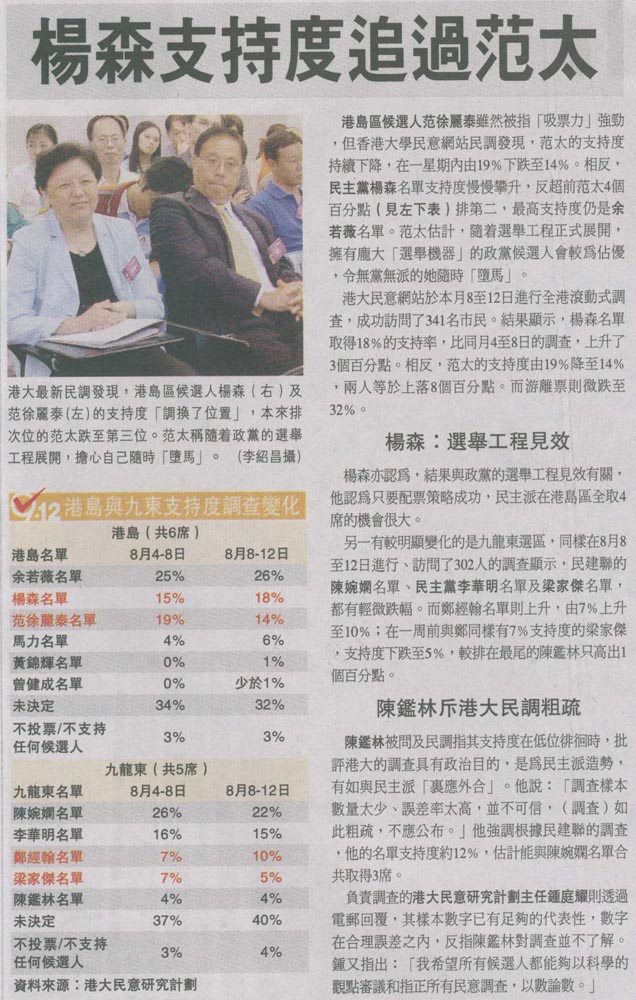 明報 - 楊森支持度追過范太