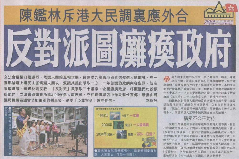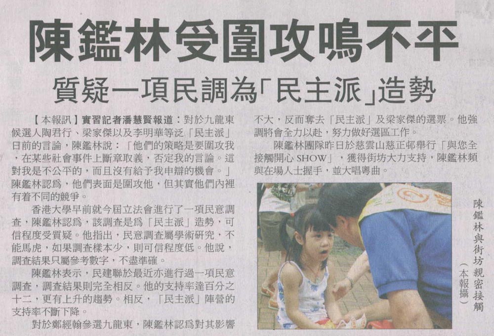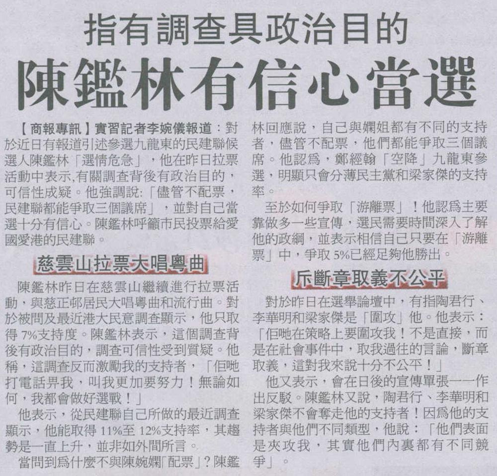 商報 - 指有調查具政治目的 陳鑑林有信心當選