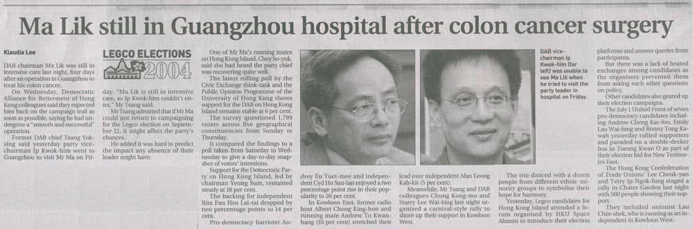 SCMP - Ma Lik still in Guangzhou hospital after colon cancer surgery