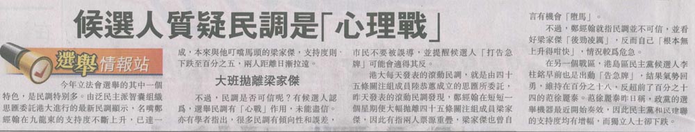 星島 - 候選人質疑民調是「心理戰」
