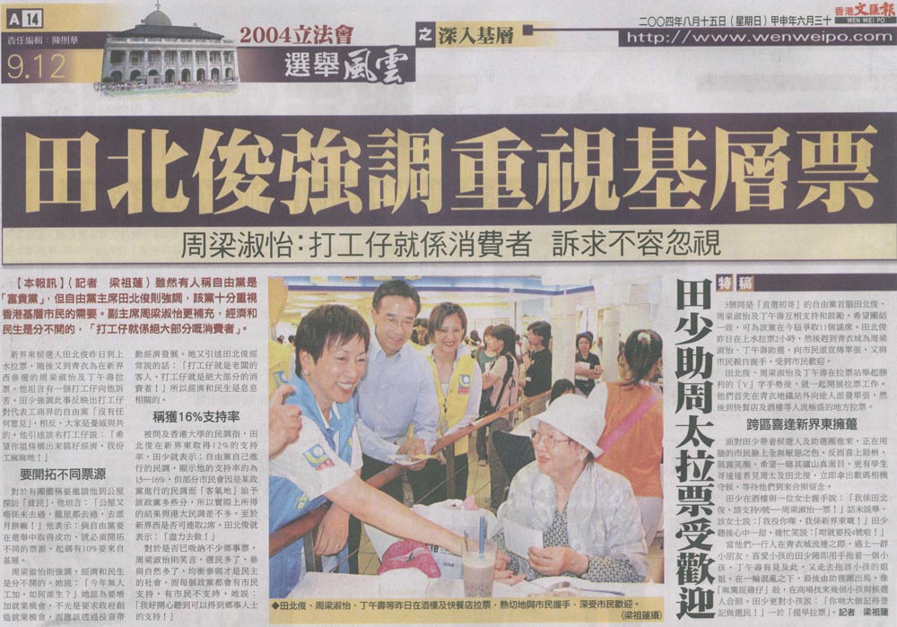 文匯 - 田北俊強調重視基層票 周梁淑怡:打工仔就係消費者 訴求不容忽視