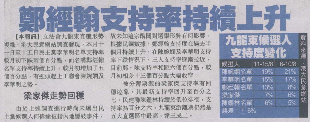 蘋果 - 鄭經翰支持率持續上升
