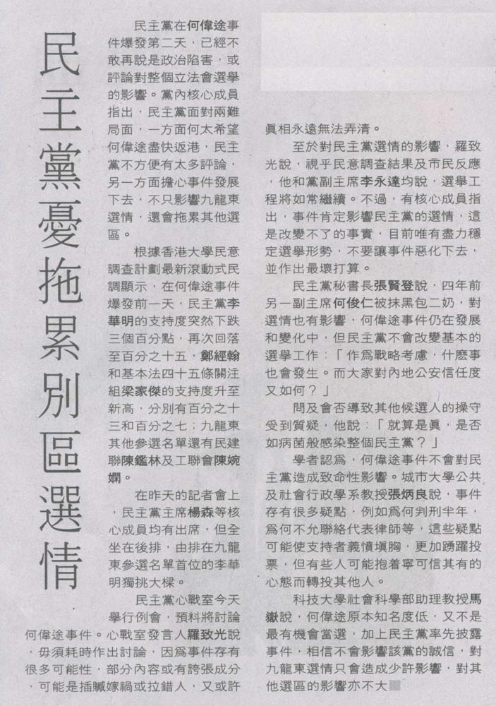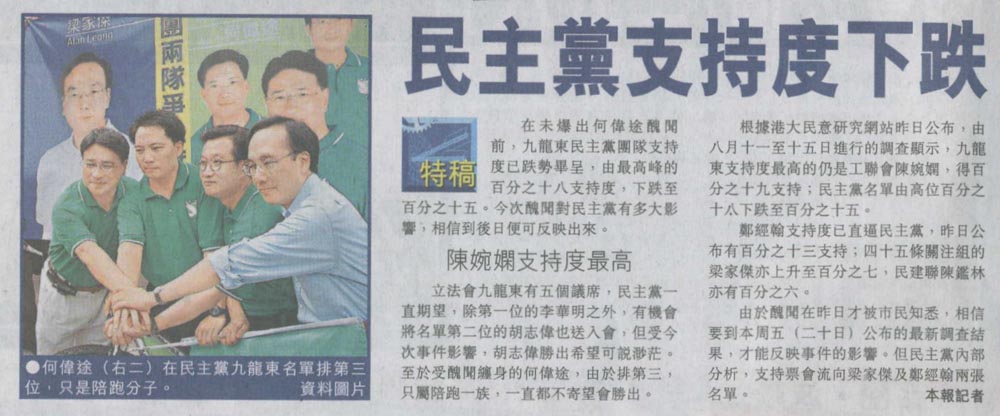HK Economic Journal - 民主黨憂拖累別區選情