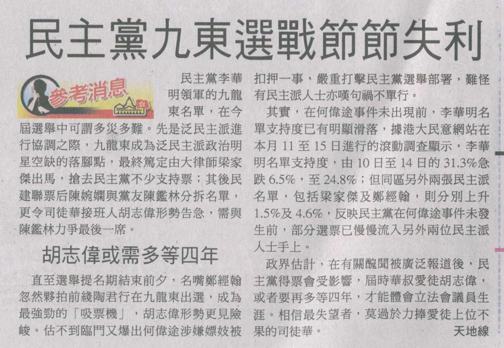 成報 - 民主黨九東選戰節節失利