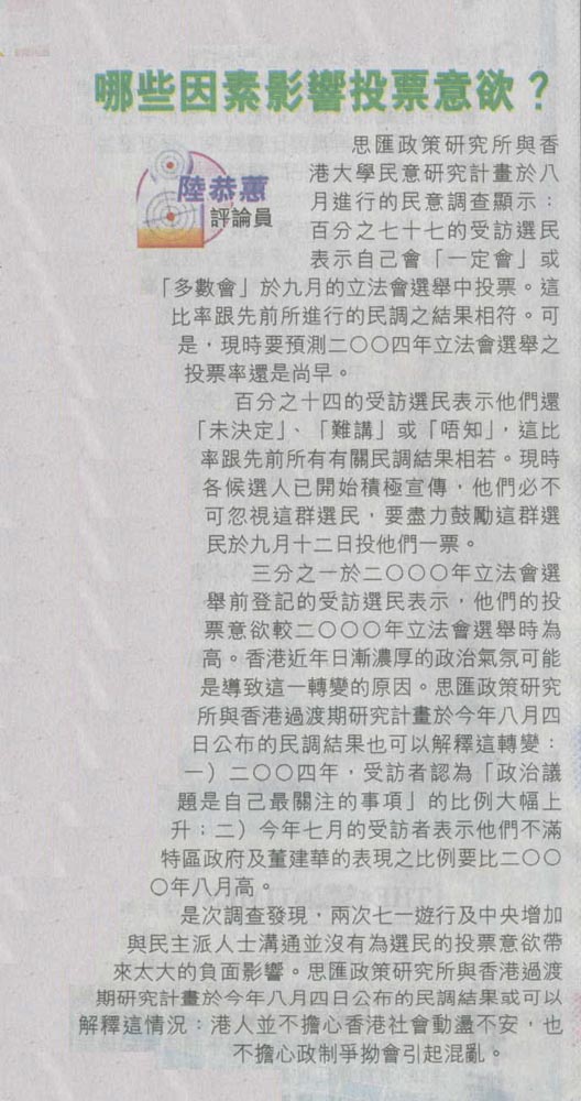 太陽 - 哪些因素影響投票意欲?