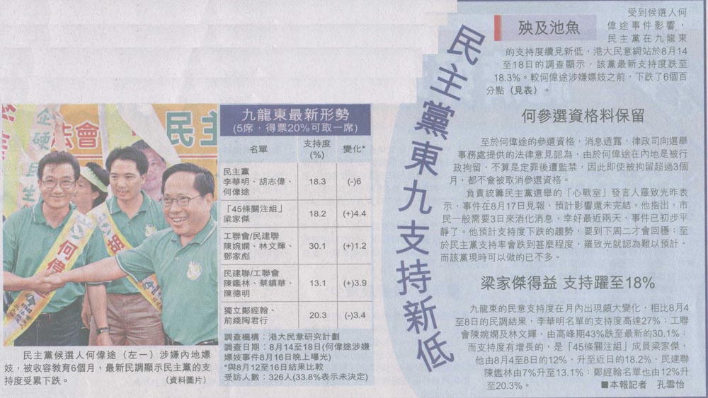 蘋果 - 民主黨選情未受大干擾
