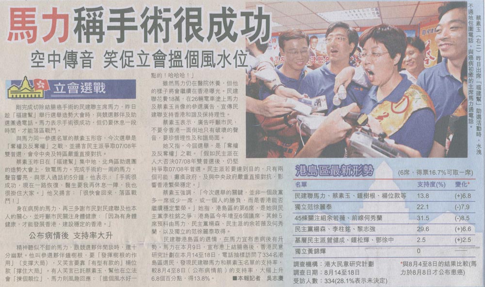 經濟日報 - 馬力稱手術很成功 空中傳音 笑促立會搵個風水位