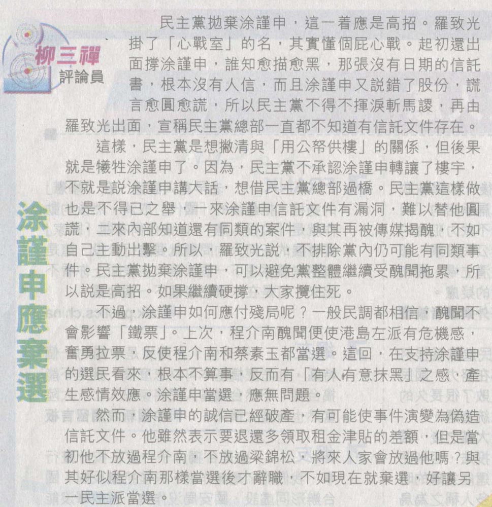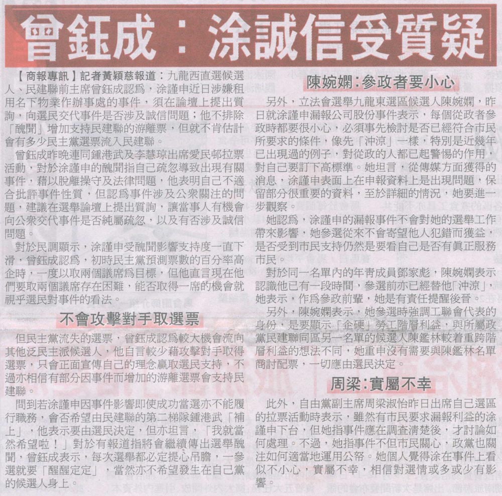 商報 - 曾鈺成:涂誠信受質疑
