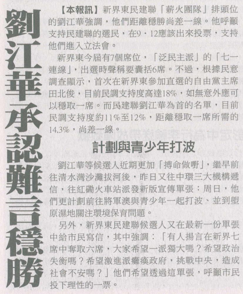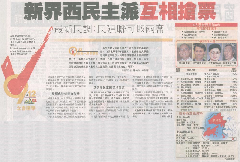明報 - 新界西民主派互相搶票 最新民調:民建聯可取兩席