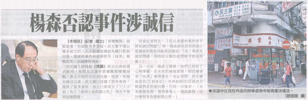 文匯 - 楊森否認事件涉誠信