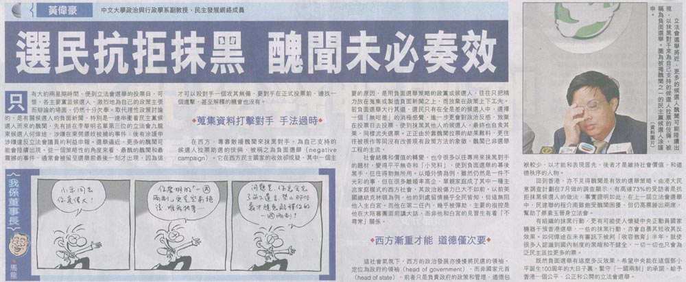經濟日報 - 選民抗拒抹黑 醜聞未必奏效