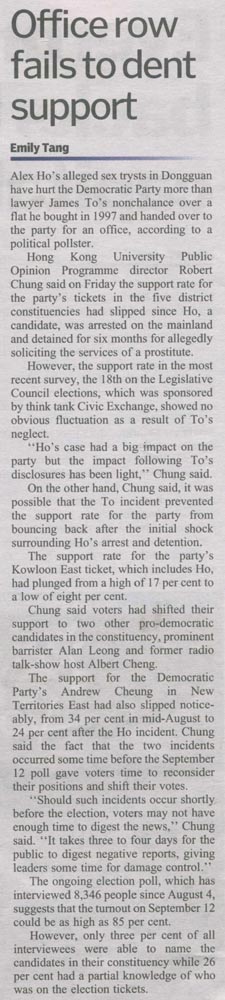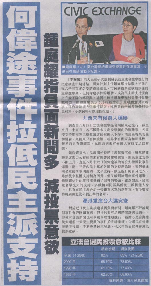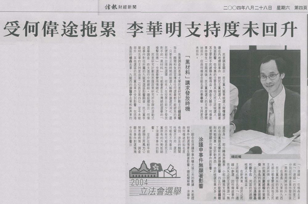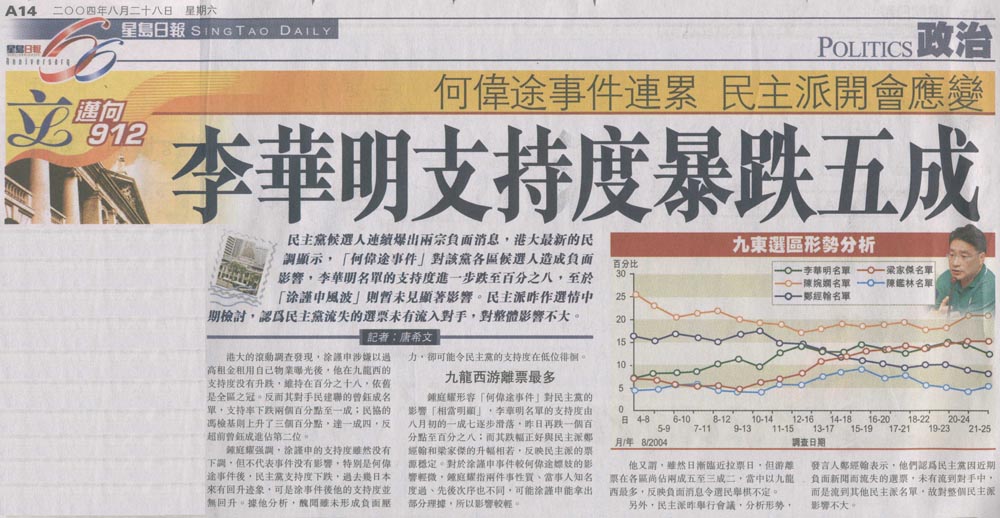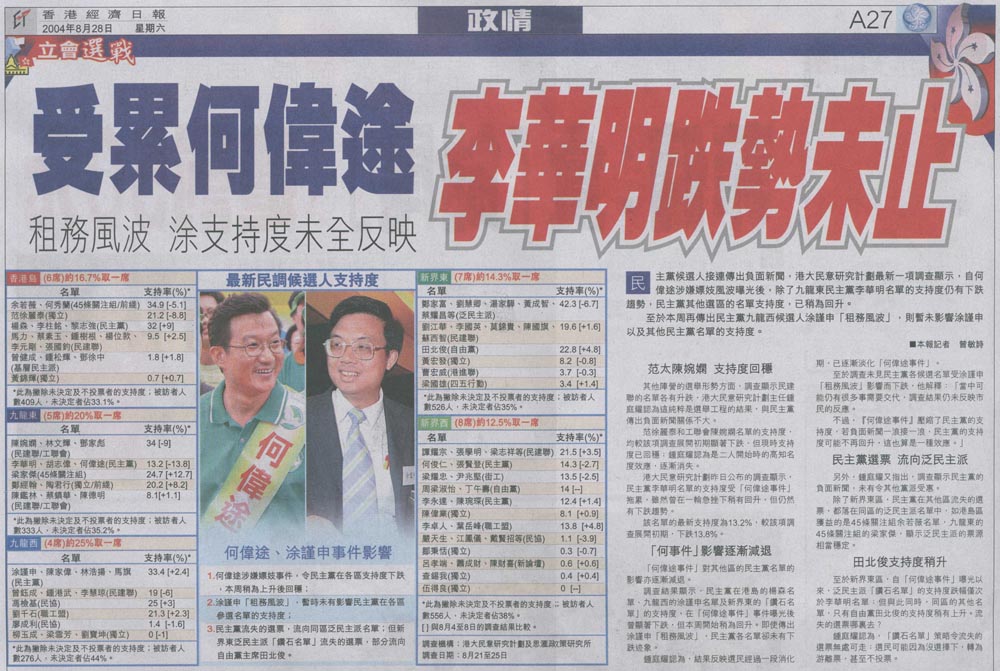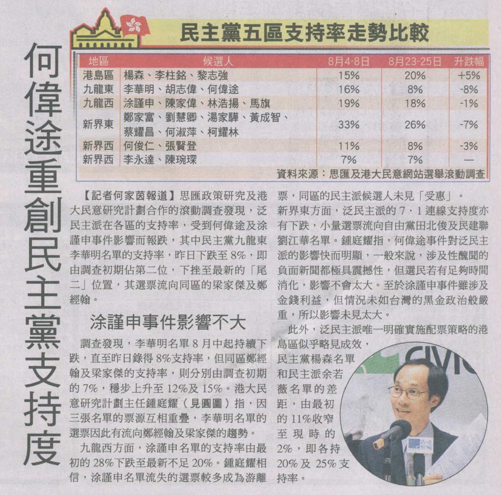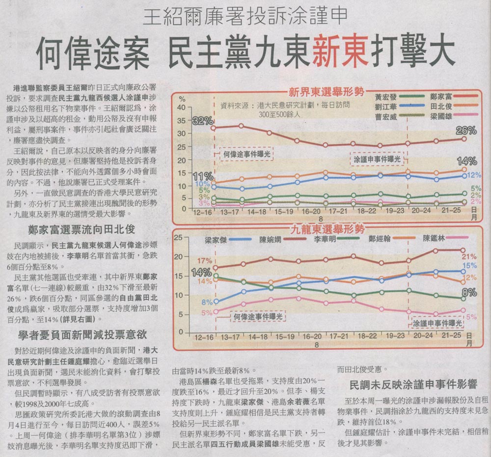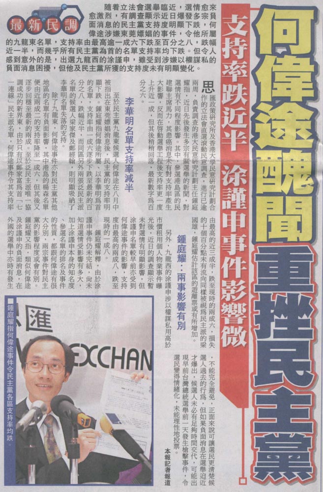 成報 - 何偉途重創民主黨支持度
