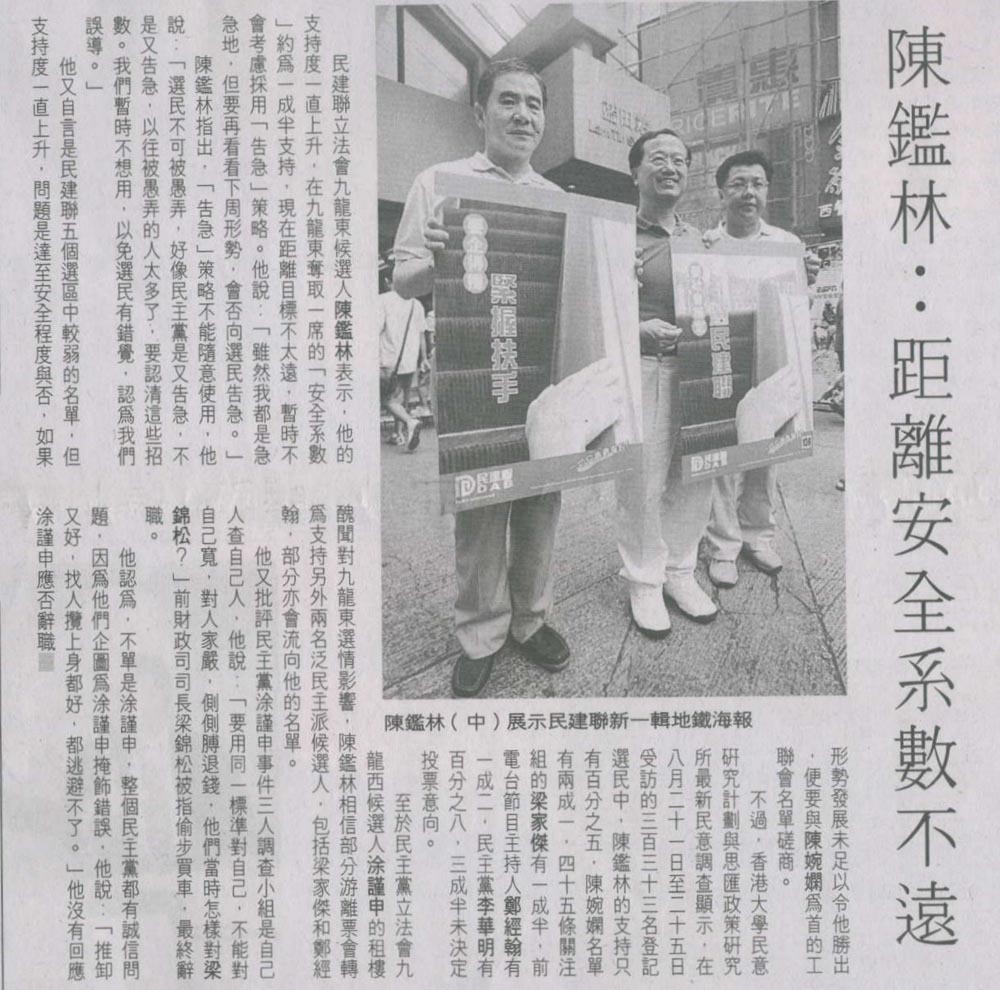 HK Economic Journal - 陳鑑林:距離安全系數不遠