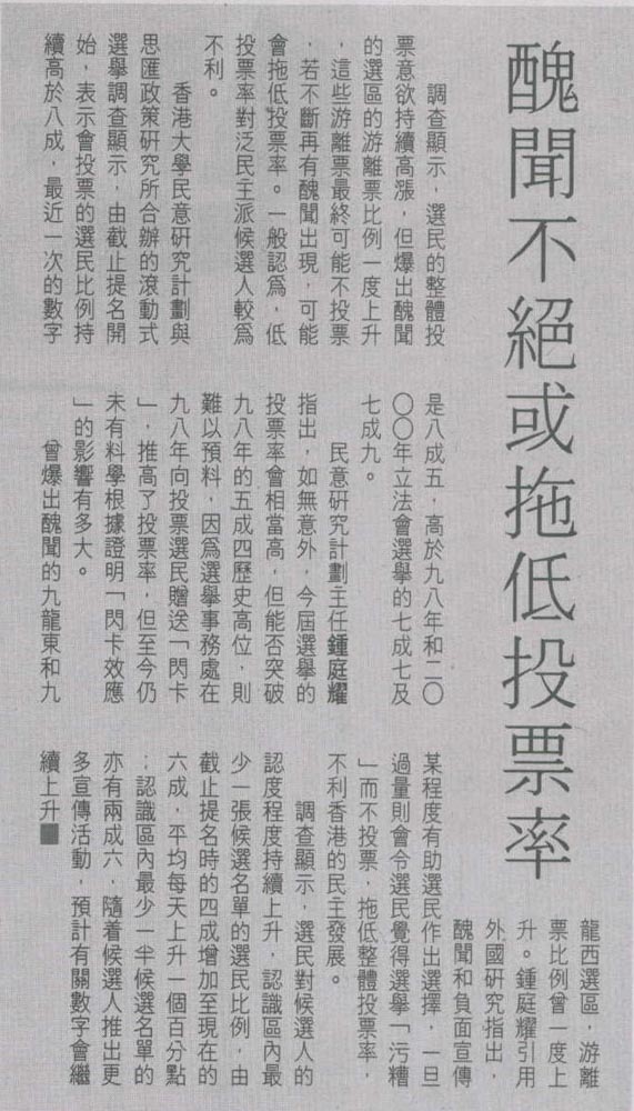 HK Economic Journal - 醜聞不絕或拖低投票率