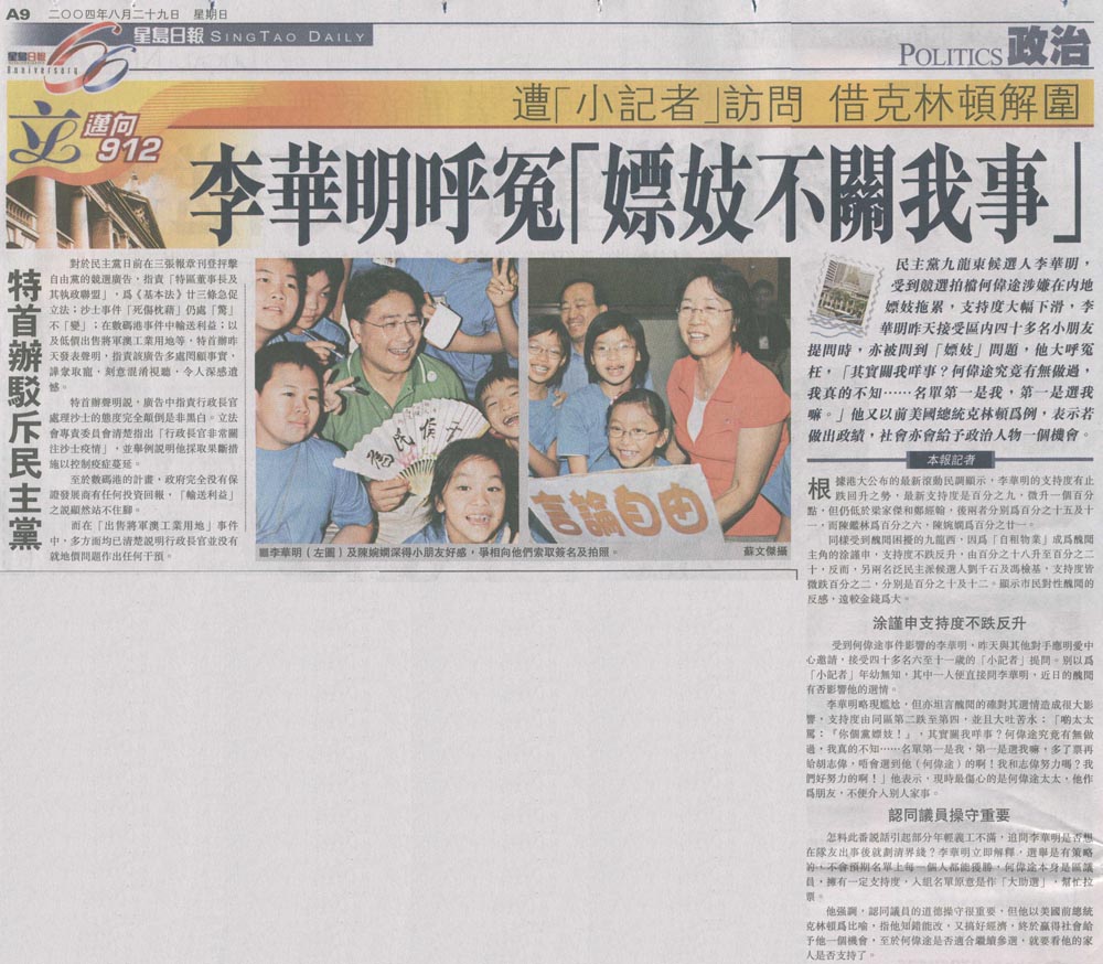 星島 - 遭「小記者」訪問借克林頓解圍 李華明呼冤「嫖妓不關我事」