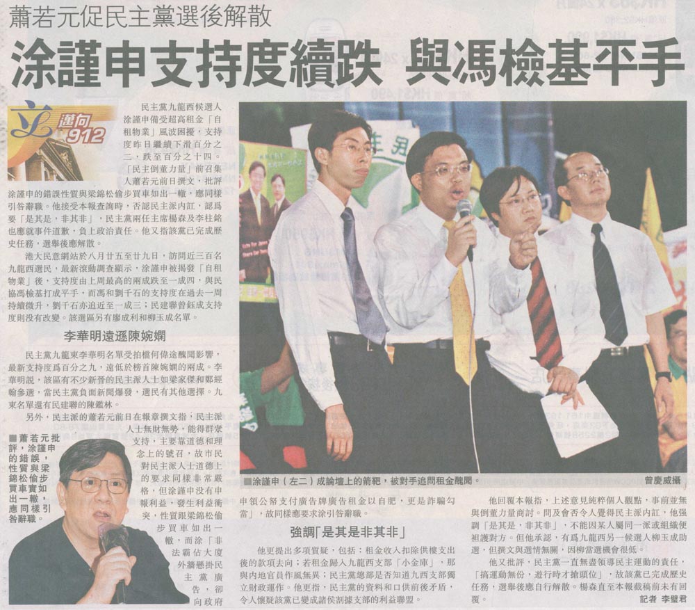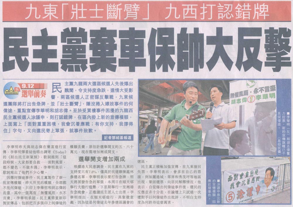 成報 - 九東「壯士斷臂」 九西打認錯牌 民主黨棄車保帥大反擊