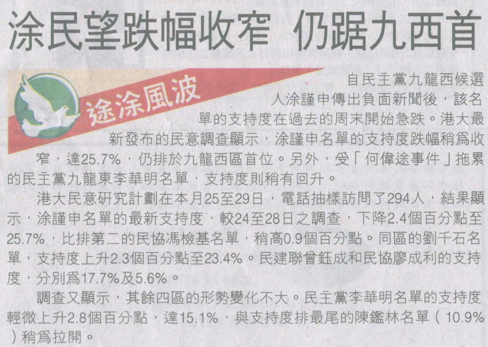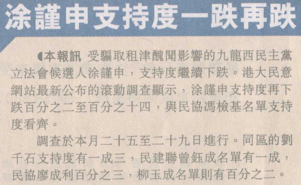 星島 - 蕭若元促民主黨選後解散 涂謹申支持度續跌與馮檢基平手