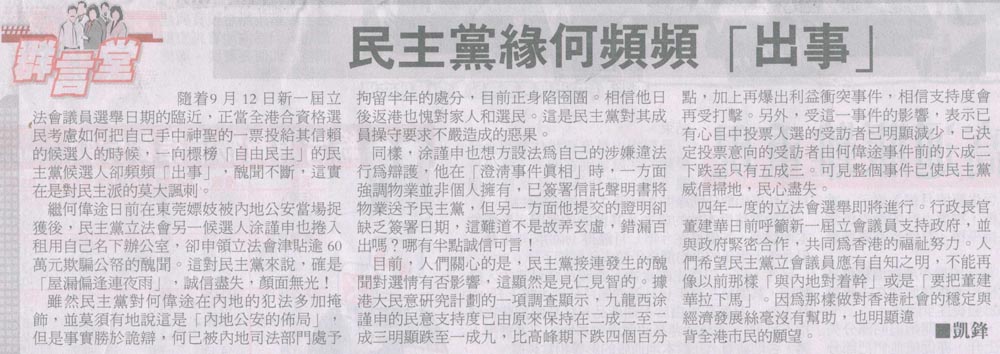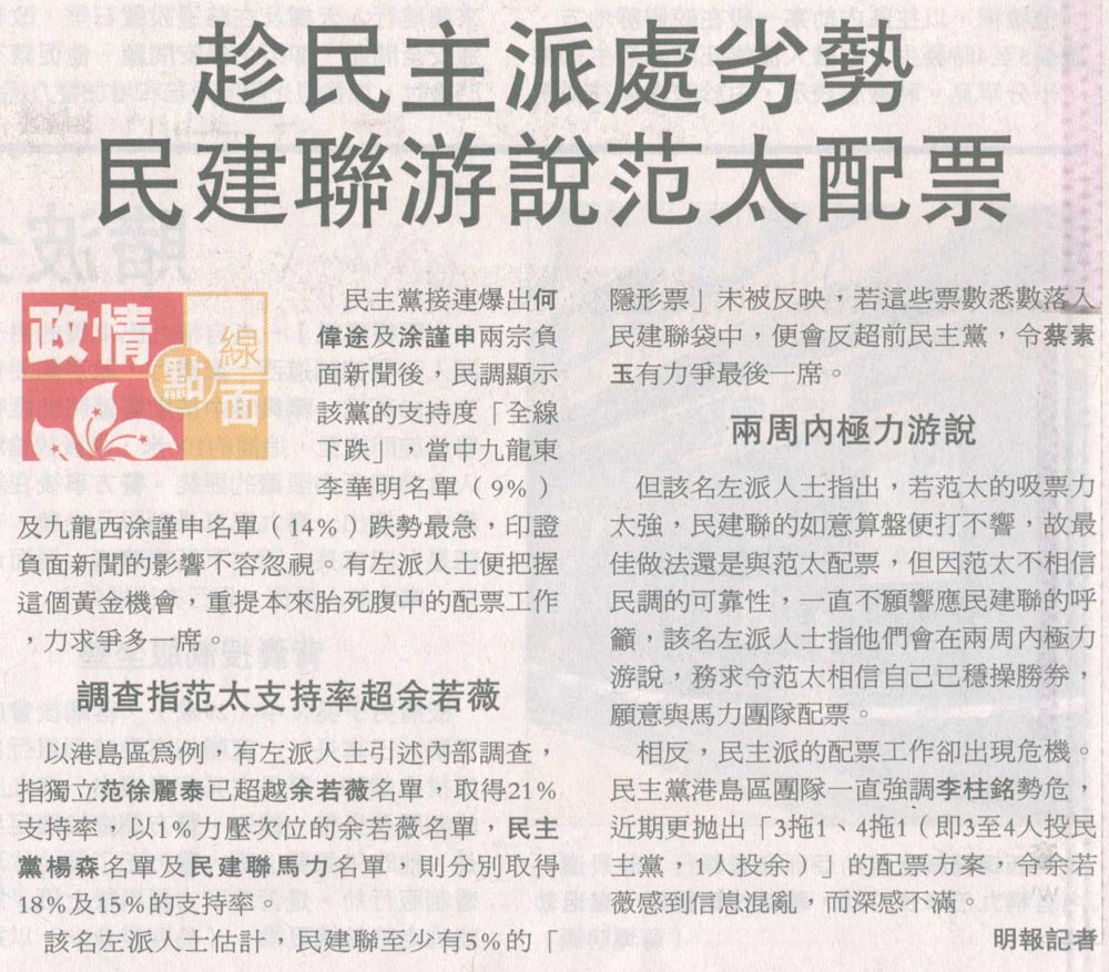 明報 - 趁民主派處劣勢 民建聯游說范太配票