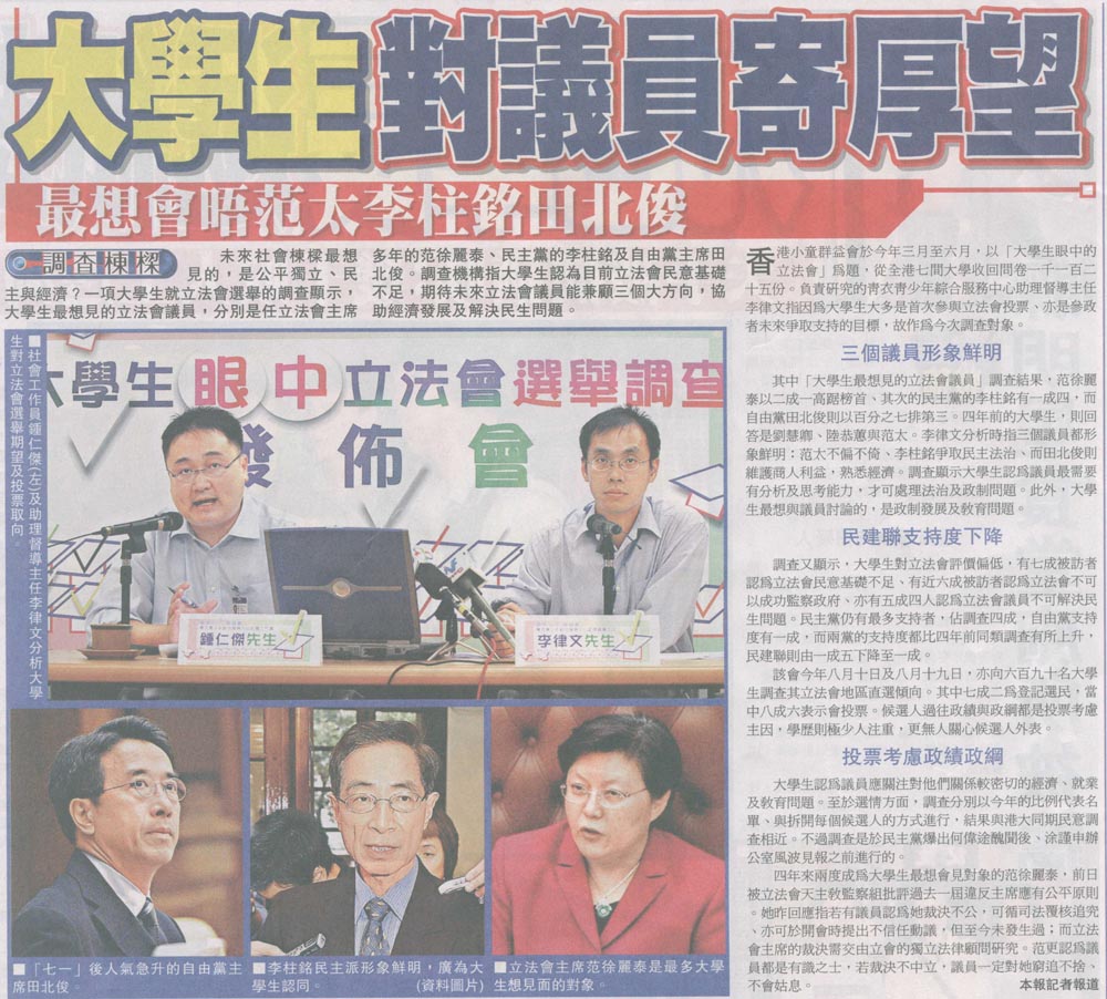 新報 - 大學生對議員寄厚望 最想會晤范太李柱銘田北俊